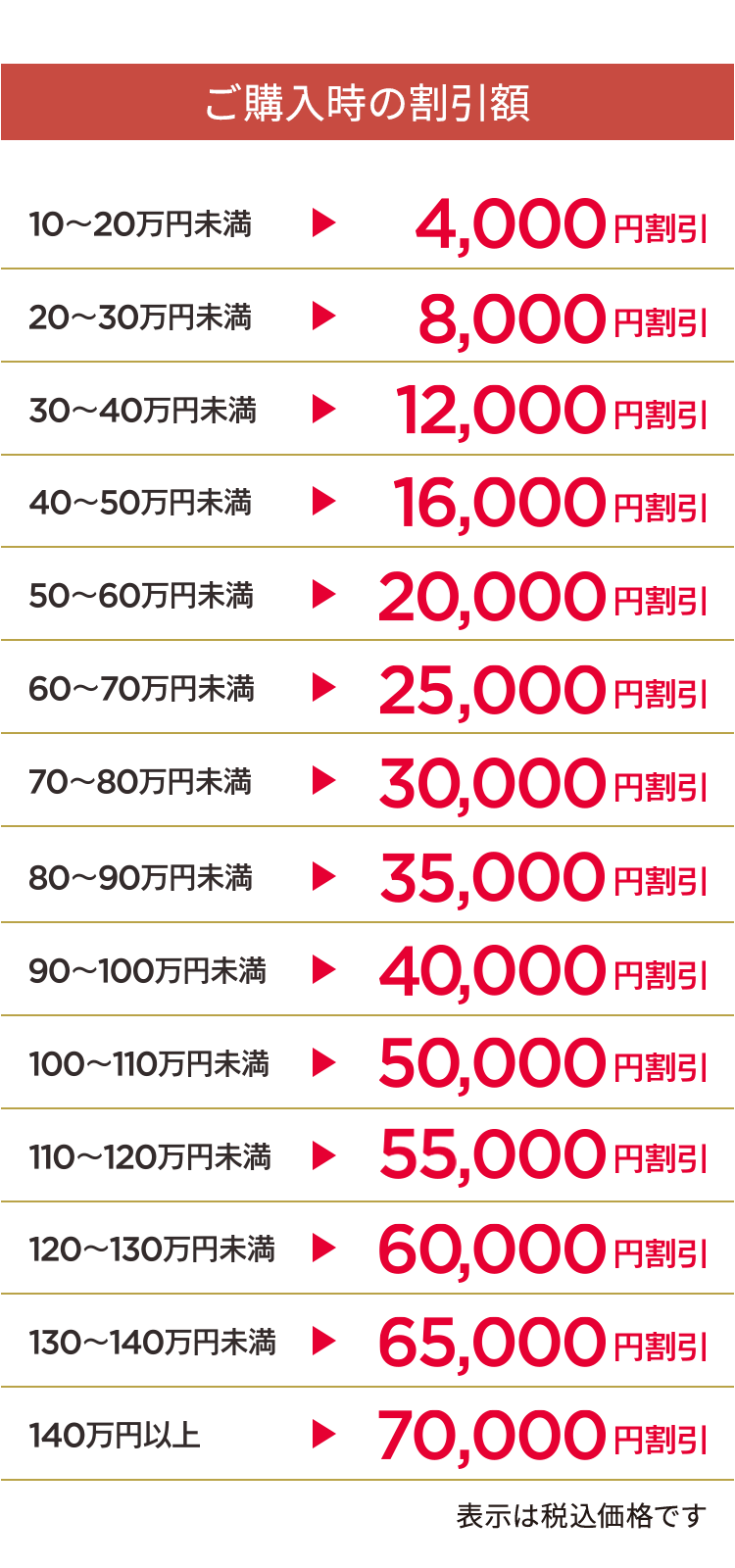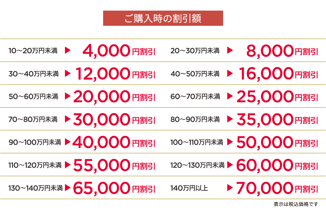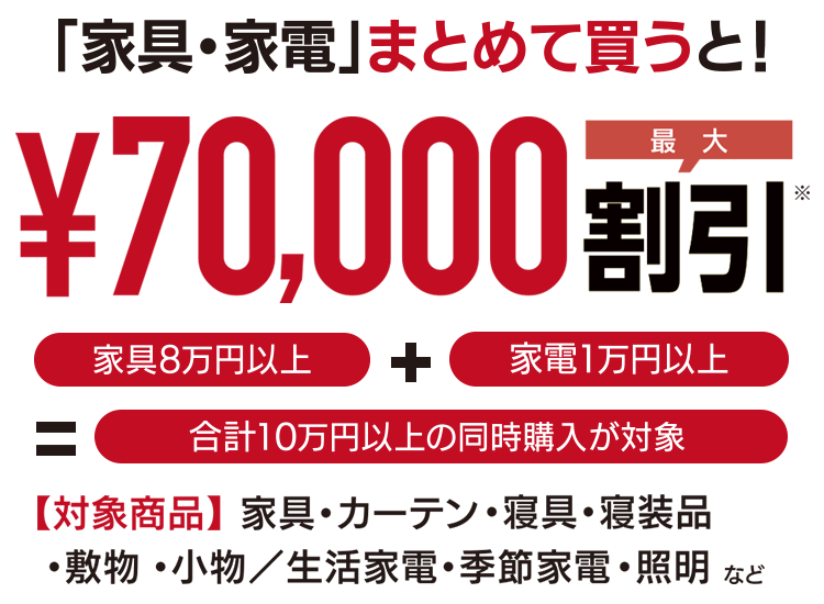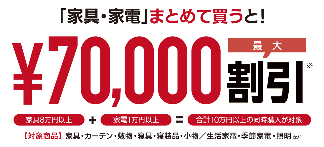 - * 限定品・特価品・処分品・ご商談後価格商品・リサイクル費用・工事費・部品代・配送代金・その他一部商品は対象外となります。