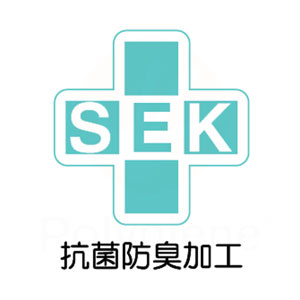 - 〔SEKマーク〕一般社団法人繊維評価技術協議会が認証を行っている機能加工繊維製品の認証マークで、基準に合格した商品に表示ができます。青色は「抗菌防臭加工」のマークで、繊維上の菌の増殖を制御し、防臭効果を示します。