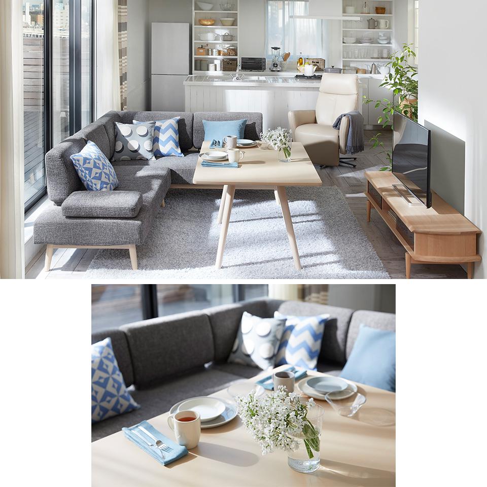 食後は楽な姿勢でソファへ身体をあずけ、好きな時間をゆっくり楽しめます。