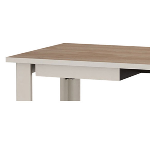 - ナチュラルな木目柄とホワイトが美しい幅120cmのデスク。キーボードの片側にA4サイズのファイルが置けます。