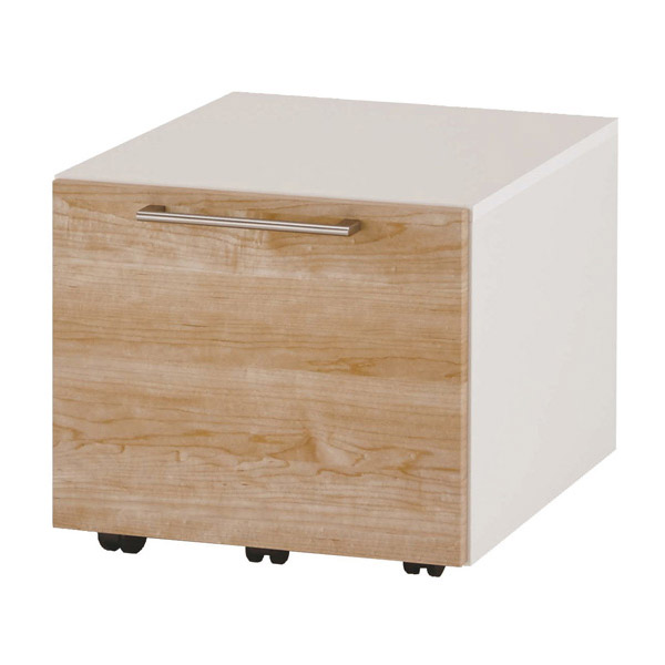 - ワゴンは上にプリンターなどを置くことができ、キャスター付きで移動出来ます。引出しは奥のものも取り出しやすい仕様です。