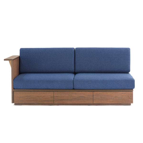 - シリーズのシェルフやデイベッドのアームと組み合わせて使用する片脚テーブル。