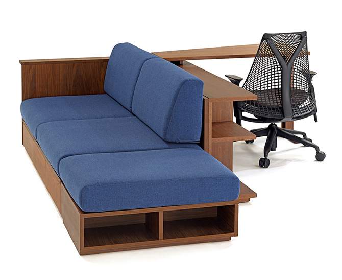 オットマンを加えることでお昼寝ができるデイベッドにもなり、来客時にはソファベッドとしてや、2人掛けソファと1人掛けのスツールとして、多彩なライフシーンで活躍してくれます。さらに、大容量の引出し付きで、リビングの収納スペースの確保も可能になります。