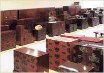 広島県府中をはじめ、加茂、春日部などの産地の総桐箪笥が一堂に集結。