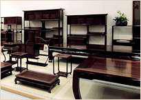 唐木とは、遣唐使が中国経由で日本にもたらした東南アジアの黒壇(こくたん)・紫壇(したん)・鉄刀木(たがやさん)・花梨(かりん)といった珍木の総称のことをいいます。材が堅いことから、釘などの接合道具を一切使わずに、複雑なホゾや框で組み上げる芸術的な高度な指物技術が発達しました。それにより作られた家具、建具、調度品などの伝統工芸品は、芸術的な価値を持つようになりました。