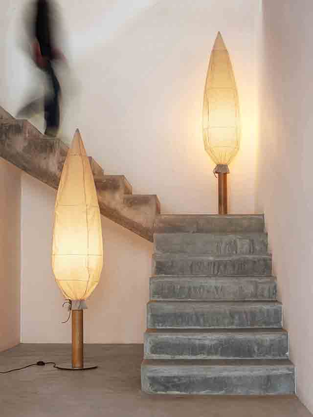 「イトスギ」を意味するCYPRESS(サイプレス)は、綿の布シェードを本体支柱に被せて、ひもで縛って留めた独特のデザイン。オブジェのようなフロアスタンドです。