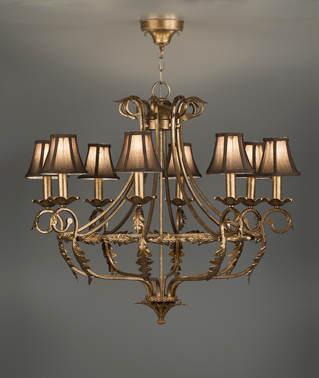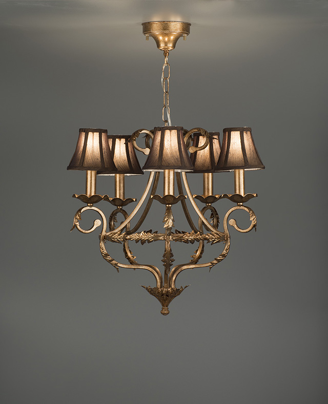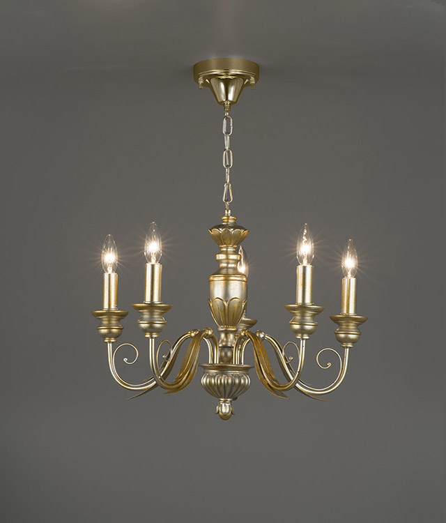 落ち着いた輝きを放つ金箔アンティーク仕上げのシャンデリアは、定番のクラシックテイストだけでなく、トレンドのシャビー風のインテリアにも合います。