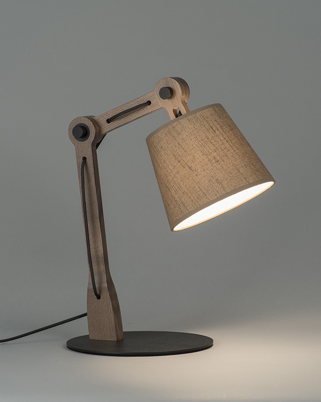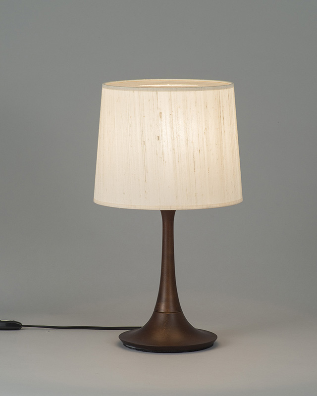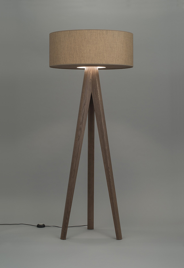 ウォールナット色塗装のアッシュの無垢材を贅沢に使用した大ぶりのスタンド。布シェードは素材感のあるざくっとした風合いのシンプルなデザイン、インテリアのコーディネートも合わせやすいアイテムとなっています。
