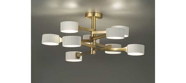 古典的なモチーフとコンテンポラリーを融合させたデザインのコレクション。オーガンジー生地のシェードと、ブロンズ色とフレンチゴールド色の装飾的なフレームが落ち着きのある上質な印象を醸し出します。