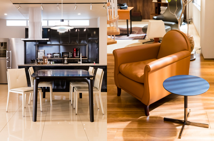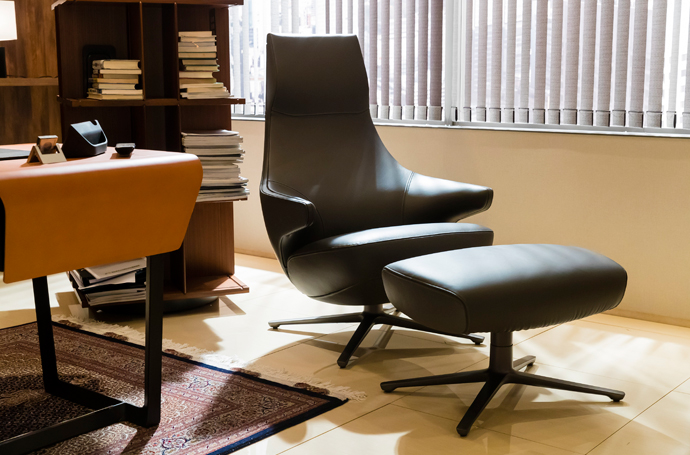 - 本体にはサドルレザーを使用、クッション部にはしっとりと柔らかい本革を組み合わせた美しいストレートラインが印象的な「ボスフォロ」。コントラストに配色されたメリハリのある色使いと、まるで宙に浮いているかのような繊細な脚部。シンプルながらもデザイン性のあるソファです。