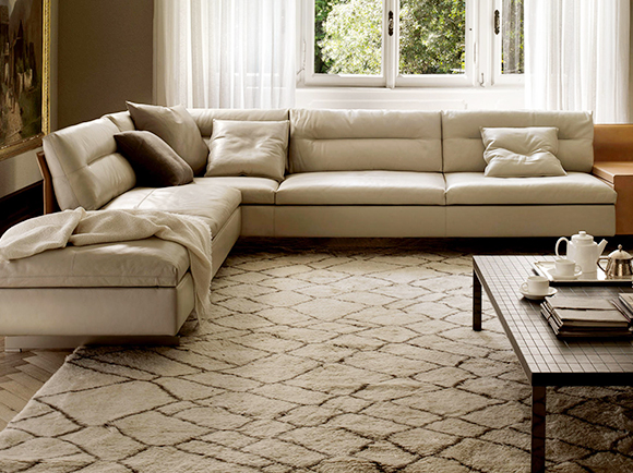 2017年のミラノサローネで発表された、ポルトローナフラウ社の最新作ソファ「レット イット ビー」。ビートルズの有名な曲「Let It Be」から名付けられています。その意味は「あるがままに」座る人のあるがままの姿勢をしっかりと受け止めてくれます。ファブリックとレザーの相性もよく、ゆったりと身体をあずけられる絶妙な座り心地となってます。