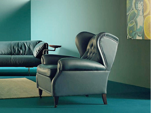 1919年、イタリア王室からの用命によってデザインされたアームチェア。「カピトンネ」と呼ばれる背中のボタン留め、肘掛部のプリーツ、背面の一つ一つの鋲打ちは全て手作業。フラウに息づく職人技の結晶です。