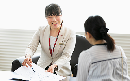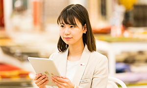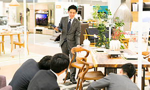質の高いコンサルティングを行うために、大塚家具のアドバイザーには、素材、構造、仕上げといった商品の特長から、インテリアの歴史や様式、スタイリングの技術、建築図面の読解、アフターメンテナンスの技術まで、インテリアに関する幅広い専門知識が求められます。